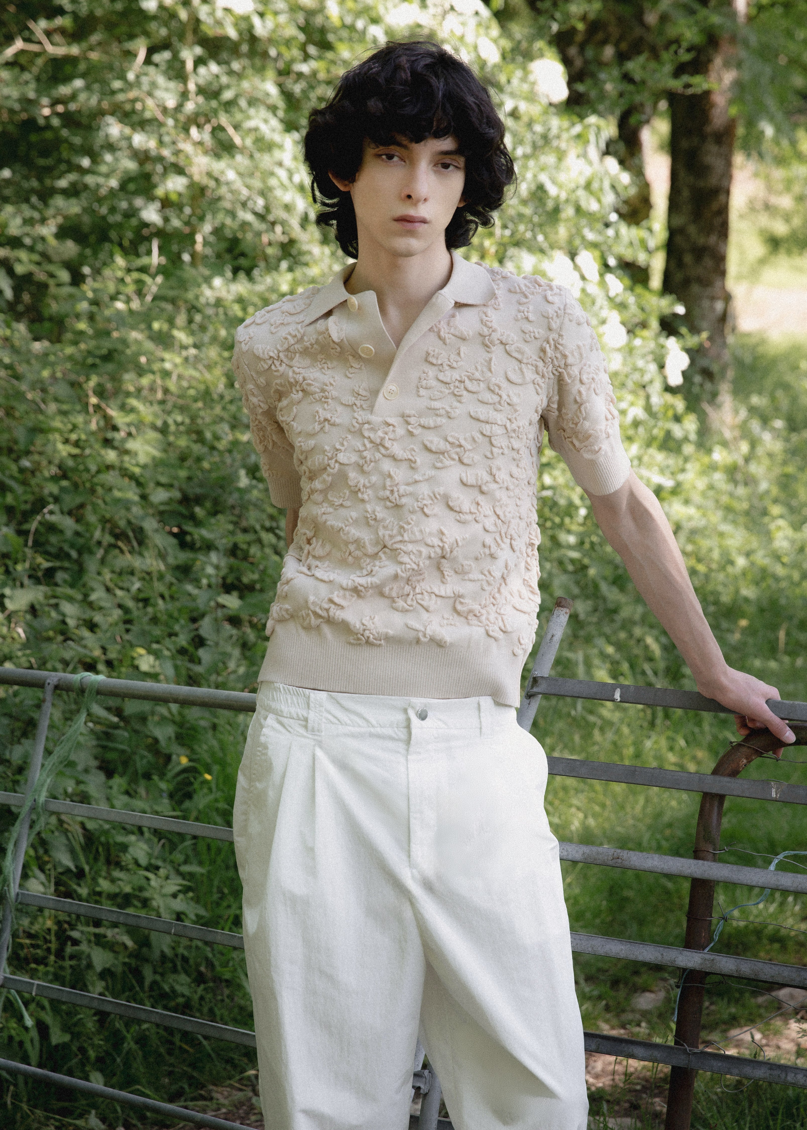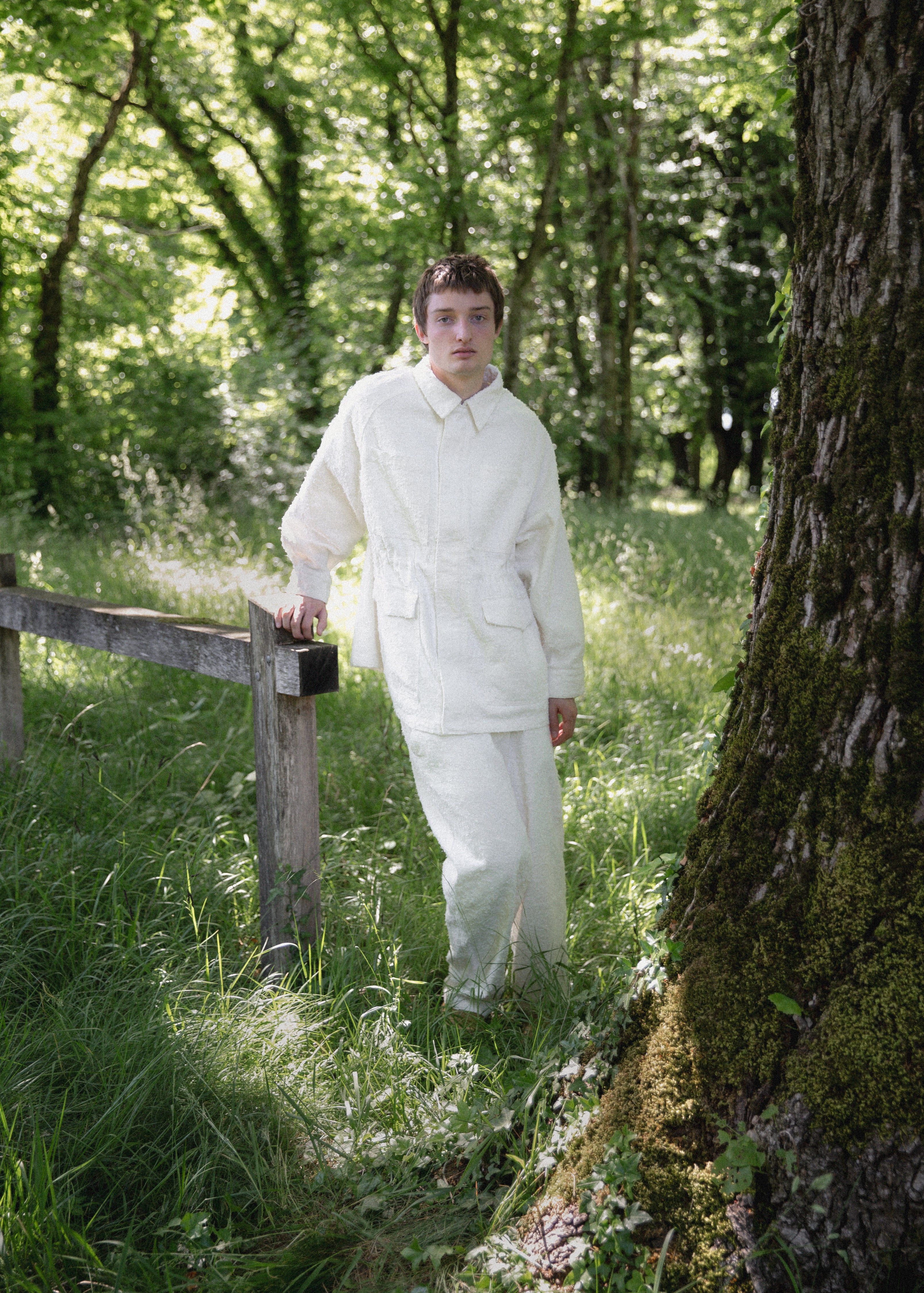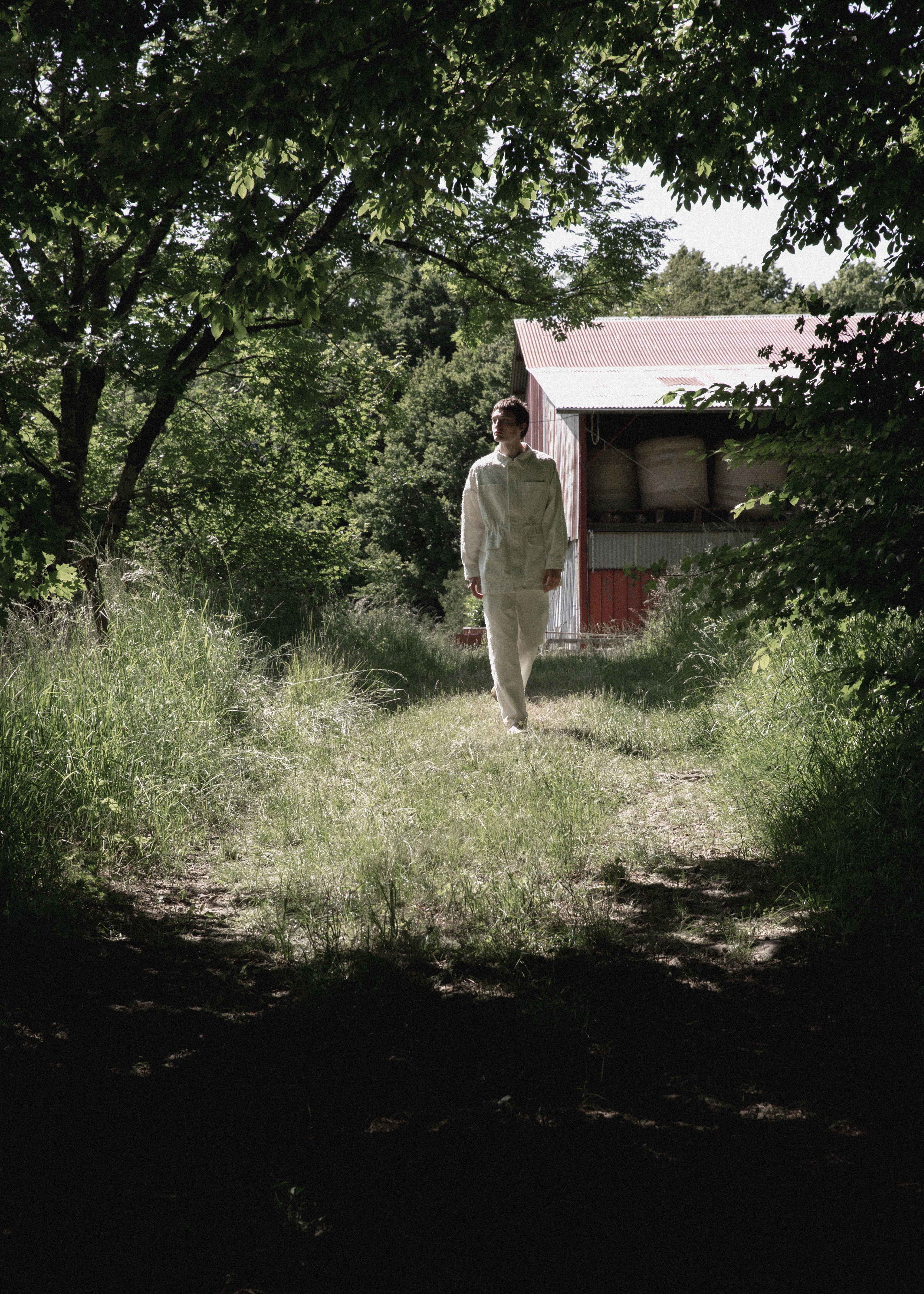 This SS26 collection is inspired by the delicate transition from spring to summer in the rural landscapes of Jura. Here, nature adorns itself with lush, overflowing greenery. The worn farms and barns of my childhood blend with the industrial lines of peri-urban areas, creating a harmonious tableau that encapsulates the ambivalence of the Jura countryside.