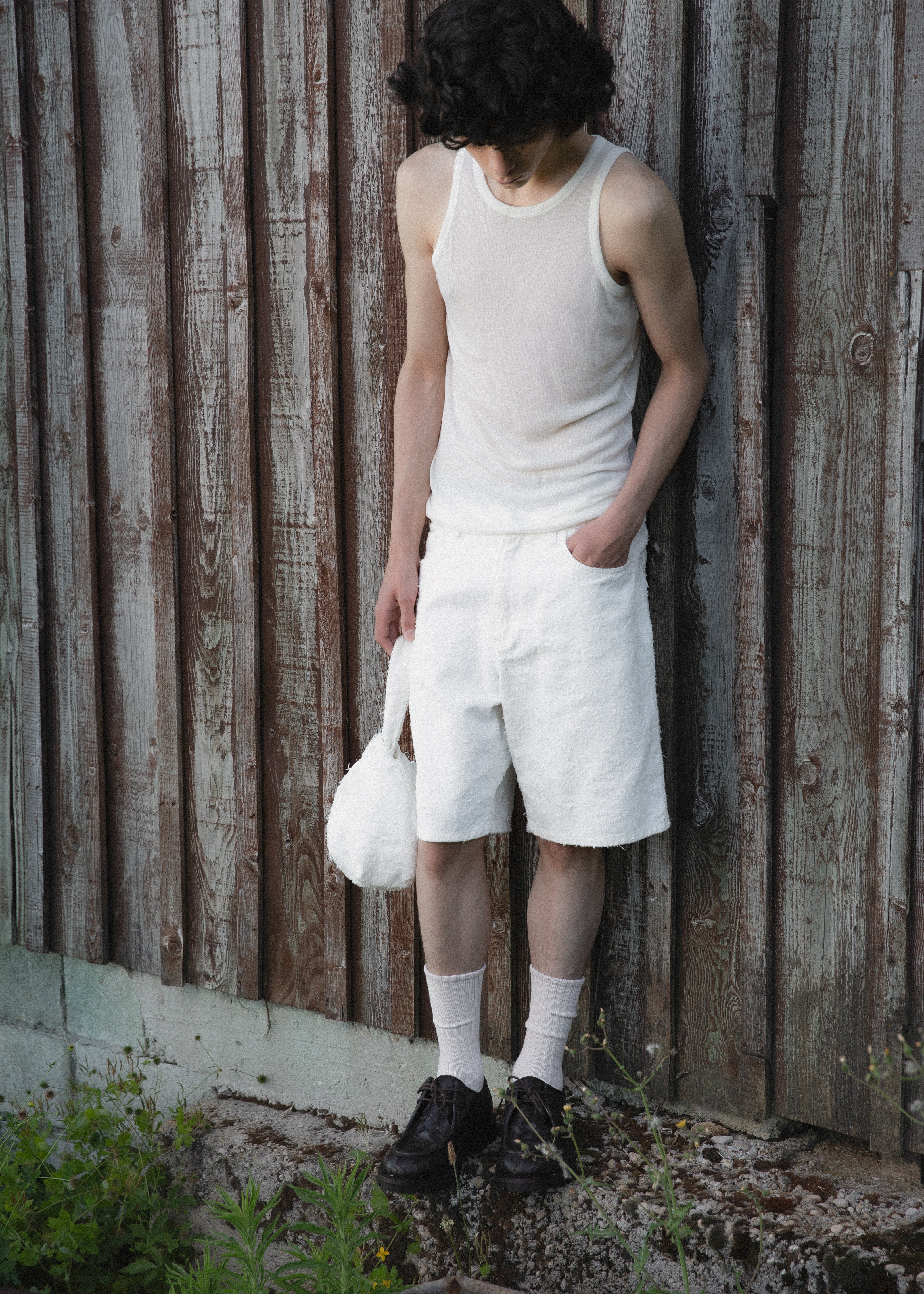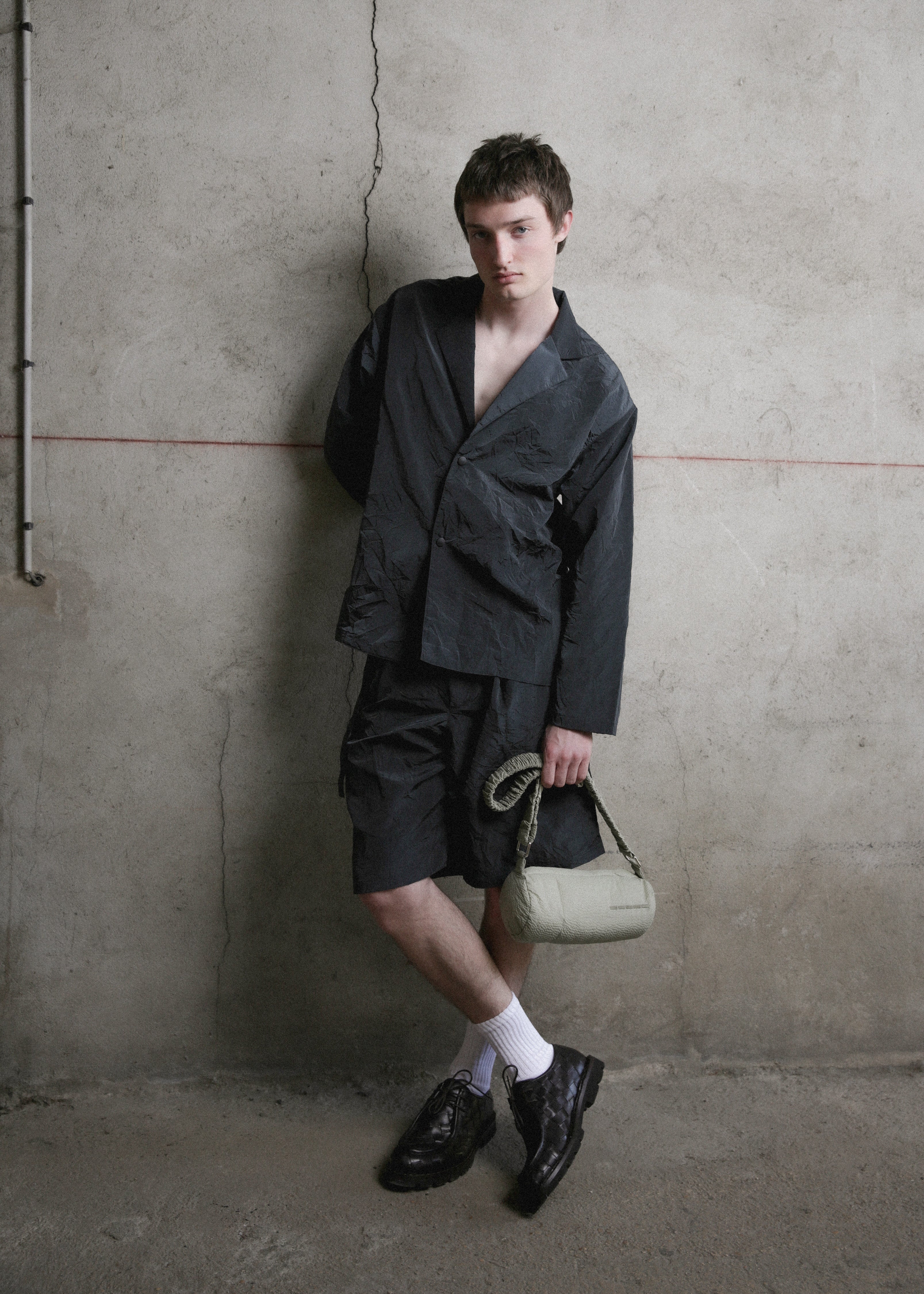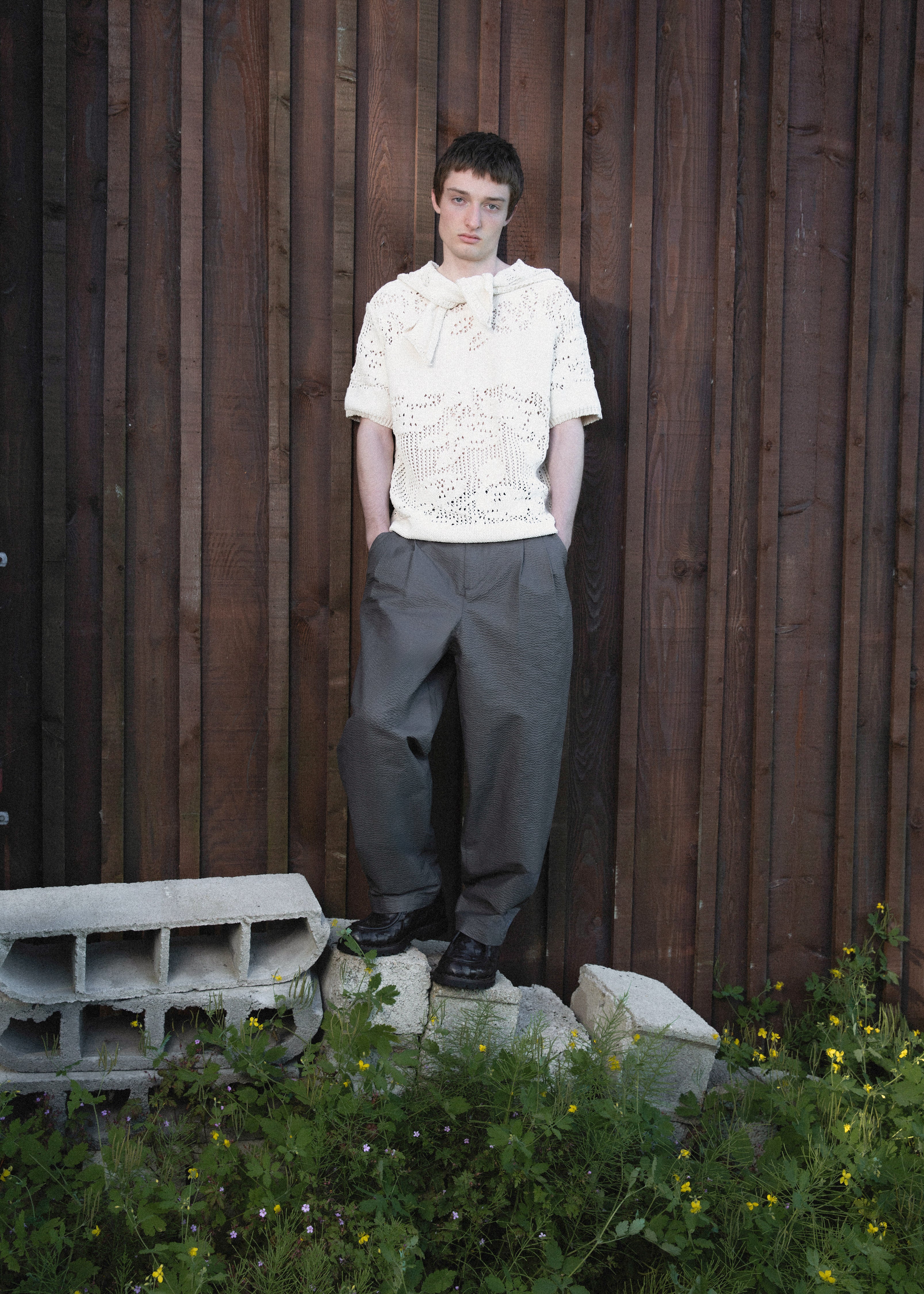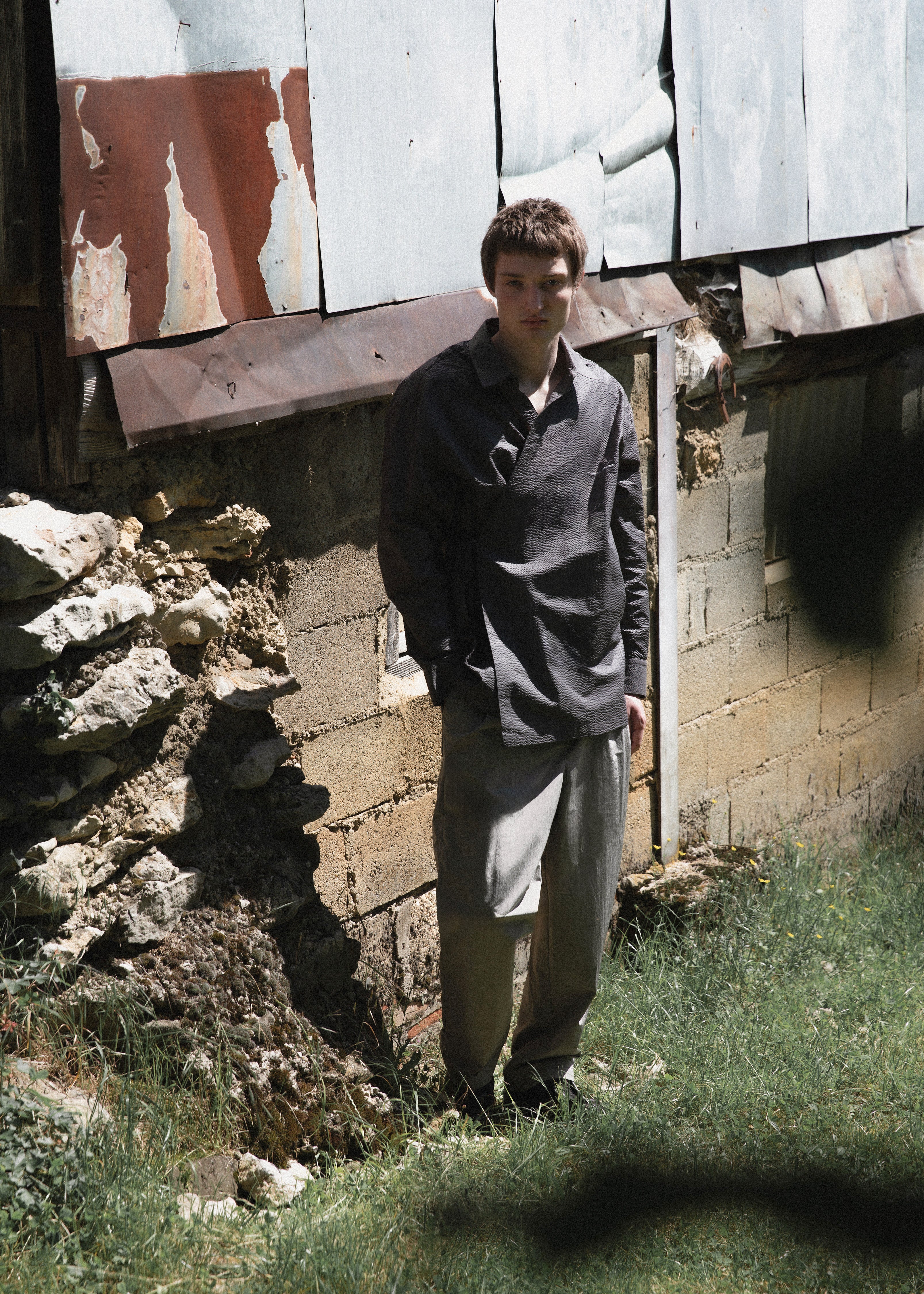 This SS26 collection is inspired by the delicate transition from spring to summer in the rural landscapes of Jura. Here, nature adorns itself with lush, overflowing greenery. The worn farms and barns of my childhood blend with the industrial lines of peri-urban areas, creating a harmonious tableau that encapsulates the ambivalence of the Jura countryside.